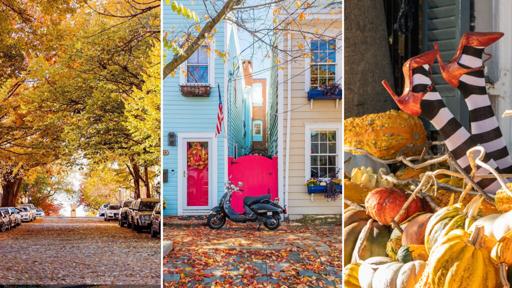 Head to Old Town Alexandria for charming streets, fall-themed walking tours, seasonal décor, and events.